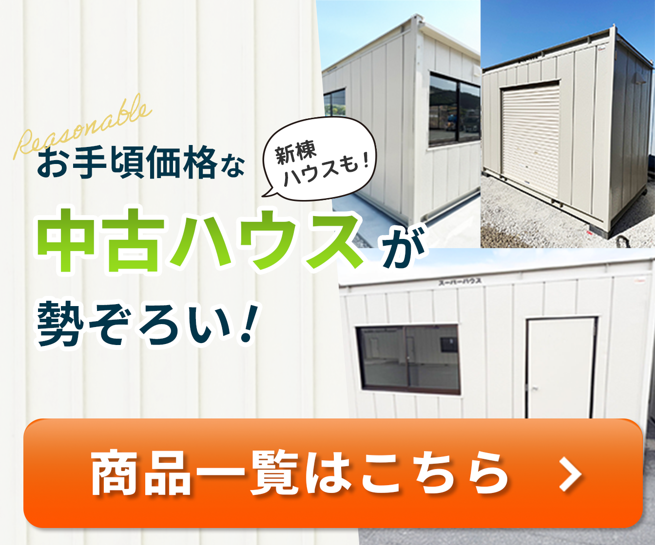 エムテックでは、新棟はもちろん、中古のユニットハウス・コンテナハウスも多数ご用意しております。洗浄、メンテナンス済みですので、出来る限り価格を抑えたいという方はぜひ中古ハウスもご検討ください。