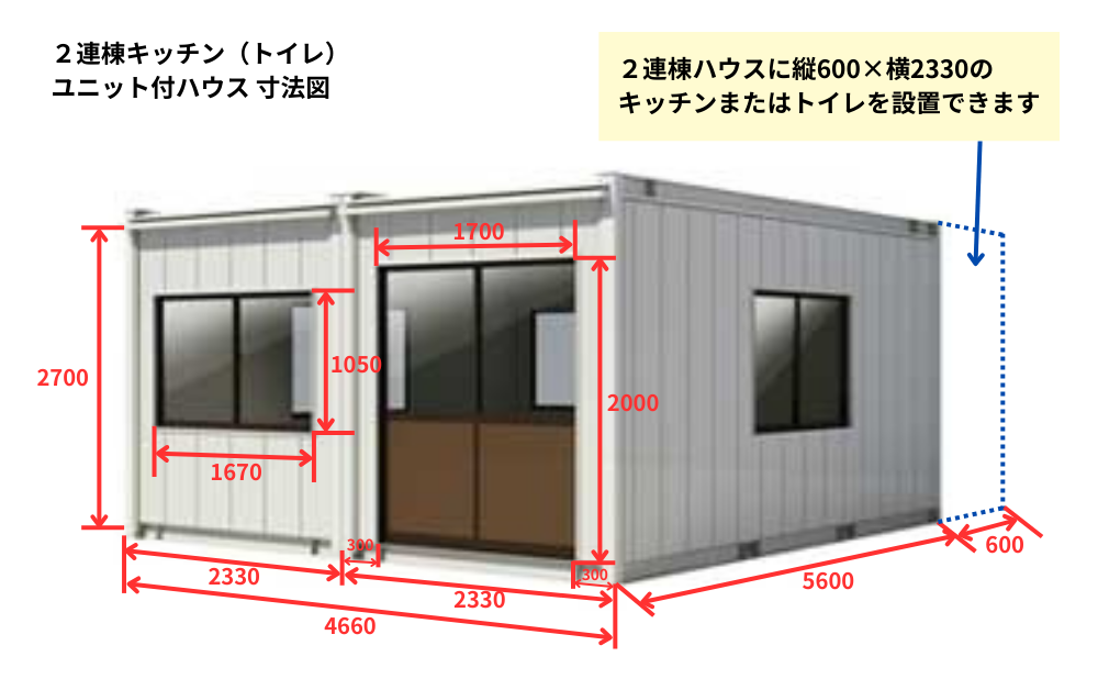 【8坪ユニットハウス】16畳+【キッチンまたはトイレ】約1畳